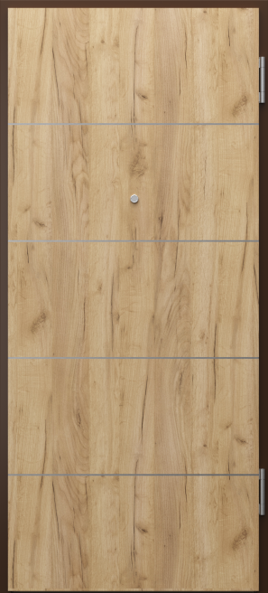 Do dyspozycji masz szeroki wybór kolorystyki skrzydła – to m.in. odcienie takie jak Naturalny Dąb, Jesion, Orzech, Naturalny Select i Naturalny Dąb Satin z możliwością wyboru słojów poziomych lub pionowych. Jeśli planujesz zakup drzwi akustycznych 42 dB z myślą o zastosowaniu w obiekcie publicznym lub jako drzwi zewnętrzne, dobrym wyborem będą wyjątkowo trwałe okleiny Gladstone/Halifax lub CPL. Zamek o najwyższej 3 klasie kategorii użytkowania i uszczelka pęczniejąca pod wpływem wysokiej temperatury podnoszą bezpieczeństwo korzystania z drzwi akustycznych 42 dB. Technologia TechnoPORTA AQUA STOP skutecznie zabezpiecza drzwi przed wilgocią.