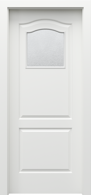 Drzwi z dyskretnym przeszkleniem w górnej części skrzydła to charakterystyczny element modelu LONDYN O. Szyba o wzorze typu „chinchilla” zapewnia intymność, a jednocześnie wprowadza dodatkowe światło do wnętrza pomieszczenia. Skrzydła z tej kolekcji doskonale sprawdza się w łazience, a także jako drzwi pokojowe. Gustowne i estetyczne wykończenie w formie romantycznych łuków nad szybą dodaje uroku i sprawia, że doskonale pasują do wnętrz urządzonych w stylu angielskim.
