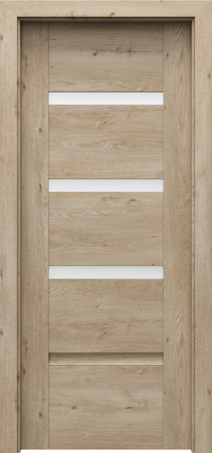 Drzwi PORTA INSPIRE grupa C to aż 5 modeli składających się w poziomych ramiaków i płycin, a także ewentualnie szyb matowych ze szkła hartowanego. W zależności od swoich indywidualnych preferencji, możesz wybrać modele: C.0 całkowicie pozbawione szklanych elementów, C.1 z jedną szybą w górnej części, C.2 (z dwiema szybami), C.3 (z trzema szybami) oraz C.4, który posiada aż cztery szyby. Ostatni z wymienionych modeli, czyli PORTA INSPIRE C.4 jest jednocześnie wariantem najbardziej polecanym do ciemnych pomieszczeń, które wymagają doświetlenia. To zatem idealny wybór np. do wnętrz, w których nie ma okna lub potrzeba więcej naturalnego światła.