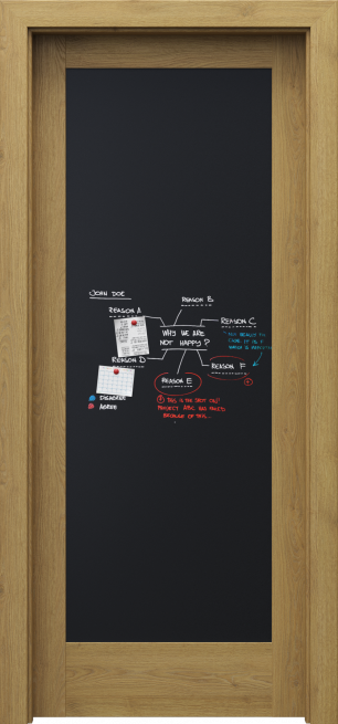 Kolekcja PORTA VERTE HOME grupa E to drzwi ramiakowe pełne lub z fantazyjnym przeszkleniem. W modelu E.0 możliwe jest zamówienie czarnej tablicy magnetycznej do rysowania markerami kredowymi. Tablica dostępna jest tylko z jednej strony skrzydła, z drugiej znajduje się pełna płycina. Ten model dostępny jest jedynie z ościeżnicą przylgową.