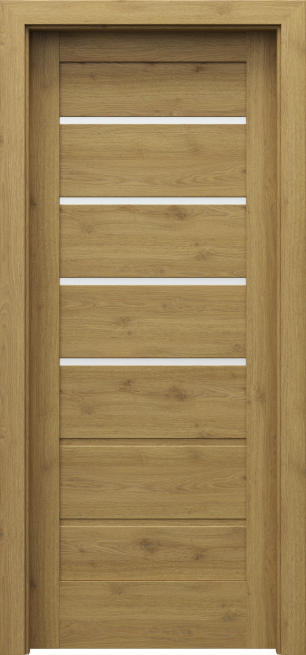 Grupa J z kolekcji PORTA VERTE HOME to drzwi ramiakowe z 6 płycinami lub dyskretnymi szybami hartowanymi matowymi o grubości 4 mm. Drzwi można zamówić podwójne, a także w wersji przesuwnej. Drzwi można zamówić w okleinie drewnopodobnej oraz w kolorze białym i szarym. W skrzydłach w białej okleinie zamiast szyby można zamówić intarsje w kolorze srebrnym lub listwy dekoracyjne w okleinie drewnopodobnej lub okleinie aluminium szczotkowane. Ta kolekcja sprawdzi się w jasnych i nowoczesnych wnętrzach.