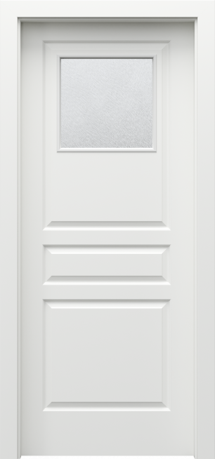 Model WIEDEŃ O z kolei wyróżnia niewielkie przeszklenie w górnej części skrzydła, w postaci kwadratowego okienka. Jest to model o wszechstronnym zastosowaniu – sprawdzi się zarówno jako drzwi do pokoju dziecka, drzwi łazienkowe czy skrzydła do sypialni. Dyskretnie wpadające światło dzienne rozjaśni wnętrze i wprowadzi do niego nieco przytulności, jednocześnie nie ujmując intymnego charakteru przestrzeni.