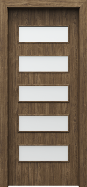 Drzwi orzech znajdziesz w większości dostępnych kolekcji drzwi wewnętrznych. Do wyboru jest kilka modnych i stylowych odcieni, w tym Orzech Bielony, chłodny odcień Orzech Verona 2, odcień klasycznego orzecha w ciepłej tonacji, a także ciemniejszy Orzech 4 o neutralnej barwie. W kolekcji PORTA FOCUS oraz PORTA LINE pojawiły się również nowe eleganckie odcienie oklein w kolorze orzech. Jest to Orzech Naturalny (matowy) oraz Orzech Modena 1 w cieplejszym odcieniu drewna.