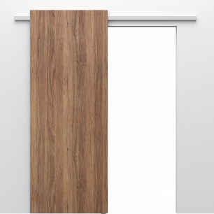 System SLIDE – uniwersalne rozwiązanie do wnętrz klasycznych, nowoczesnych czy rustykalnych. W dedykowanym skrzydle wypełnienie stanowi płyta wiórowa otworowa, a powierzchnia drzwi pokryta jest odporną na uszkodzenia okleiną syntetyczną w modnych dekorach drewna.